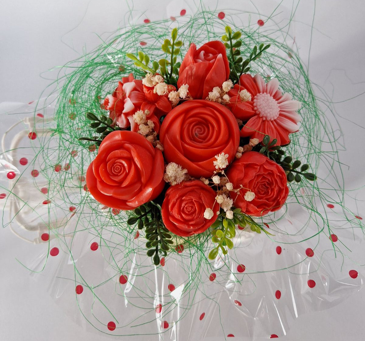 Букет💖„Цветна Разходка в червено"💖- Ръчно Изработени Ароматни Сапунени Цветя